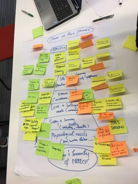 As a group we started to do more research into finding statistics about mobile phone usage, the physical and mental health risks, screen time, using a phone whilst driving, socialisation and addicting applications. We wrote down these statistics and once a good amount had been produced, we proceeded to categories them into different groups.